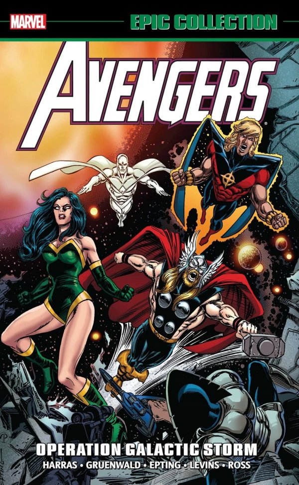 The Kree/Shi’ar War. When two of the galaxy’s most ancient and powerful races clash, it’s up to Earth’s Mightiest Heroes to play cosmic peacekeeper. With Earth in the crossfire, the Avengers are drawn into the conflict and end up as alien invaders on war-torn worlds of wonder. Assemblers East and West are embroiled in an epic too big for even two Avengers titles one that will shake the team to its very foundations. Super heroes from three galaxies clash in a war filled with incredible action including Thor vs. Gladiator of the Shi’ar Imperial Guard and the Avengers will face repercussions that will haunt them for years. Collecting AVENGERS (1963) #345-347, AVENGERS WEST COAST #80-82, QUASAR #32-34, WONDER MAN (1991) #7-9, IRON MAN (1968) #278-279, THOR (1966) #445-446, CAPTAIN AMERICA (1968) #401 and material from CAPTAIN AMERICA (1968) #398-400.
