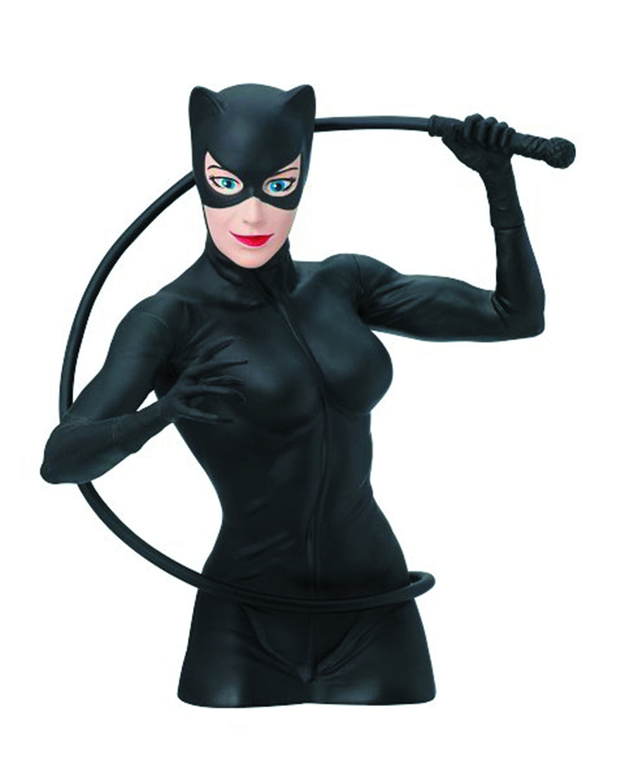 Whip in hand, the feline felon strikes a sultry, sinister pose for this 8" tall vinyl bank.