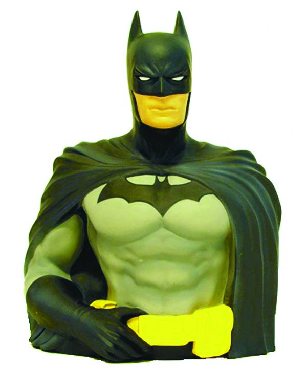 Conveniently sized at roughly 8" tall, you can display your favorite DC heroes just about anywhere. Made from roto-cast plastic, these bust banks of Batman, Superman, and Wonder Woman will protect your loose change, and not get too heavy when you fill them up with money!