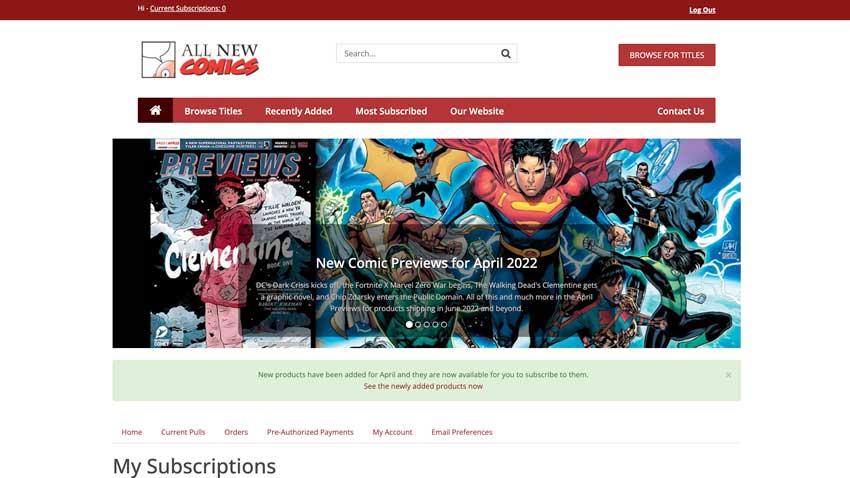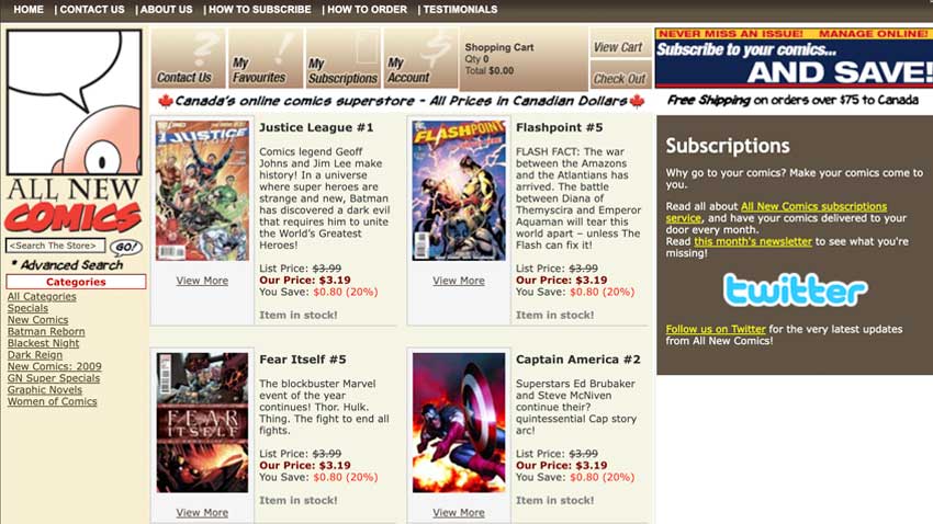 Not only was Manage Comics the first massively online comic shop in Canada with more product available than any other comic shop, but one of our biggest moments was the innovation of the Subscription Billing service on August 1st 2007 . The subscription tool was significantly overhauled to allow for automated billing directly through the website. All orders from selection to pull through billing were tracked directly on the website.